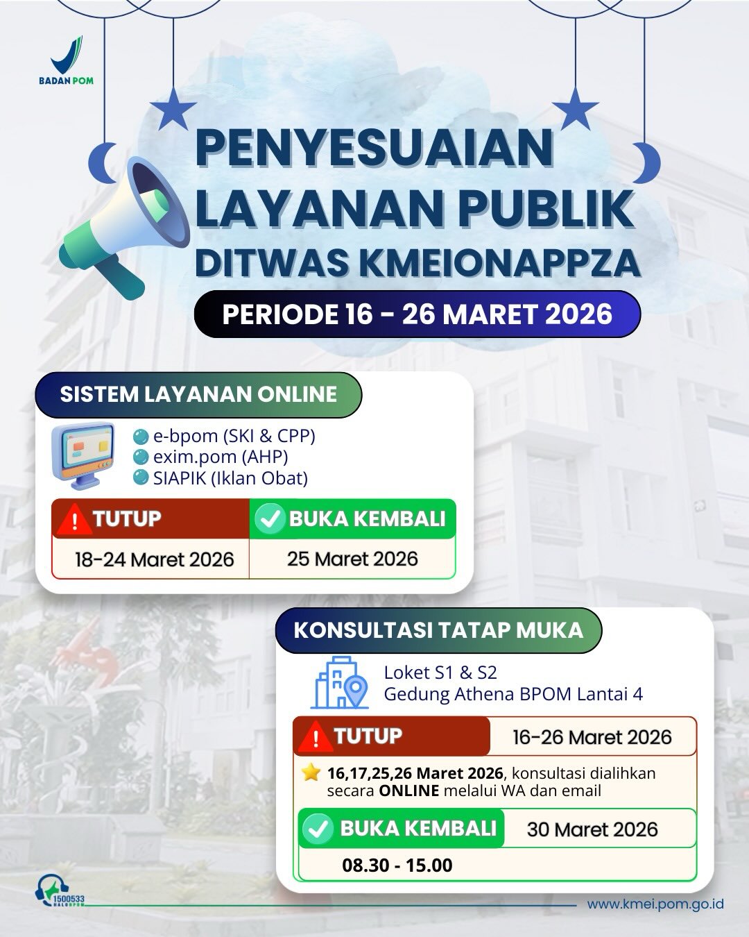 Sehubungan dengan penyesuaian jadwal layanan pada periode 16-26 Maret 2026, beberapa layanan sistem dan konsultasi mengalami penutupan sementara.